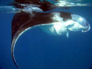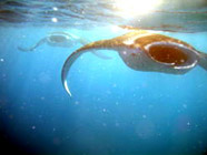カメラ片手にボートから飛び込んでマンタを追いかける人たち。口を大きく開けたマンタが目の前で大サービスしてくれました!