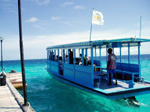 ダイビングに出かけるボート。海がきれいですね。この先が毎日マンタが出るスノーケリングポイントです。