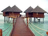 まっすぐ沖に伸びた水上コテージは、一番奥のお部屋がおすすめ。