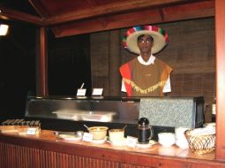 私達のレストランの席はサンドカーペットのエリアから少し上がった風通しの良いコーナー。ブッフェエリアからも近くて便利で、席の担当スタッフのニヤズ君は頭の良い気のいい青年。満足でした。