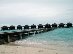 最終目的地のフィリティヨに向かいました。こちらも浮き台に降りてドーニ船に乗り換え島へ。日本人は私たちのみでした。他は韓国の方と欧州の2組でした。このドーニ船上ではホテルスタッフからのは特別の挨拶はなし。淡々とした控えめな接客をするというホテルポリシーだと推察しました。船は波を切って近くの無人島を過ぎて進みます。そしてついにフィリティヨに到着。日本を発って26時間余。木の桟橋とまぶしい白い砂、潮風と白い波。期待が高まりました。