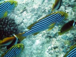 EXIT7の近くには珊瑚がよく発達していて、ムスジコショウダイとチョウチョウコショウダイのグループがいました。珊瑚の影にはトガリエビスやカスリハタと思われる姿も見られました。