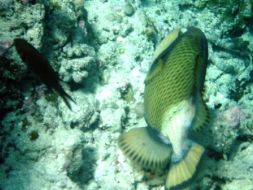 ゴマモンガラが数匹立派に育っているのもここのハウスリーフが豊かだという証拠なのでしょう。逆立ちで珊瑚を噛み砕いているところに何度も遭遇しましたが、追いかけられることはありませんでした。同じ場所に居てくれればそこを避ければ済むのですが、そうはいきません。EXIT6のポールの下にゴマモンガラが常駐していた午後には「 EXITに居るのはルール違反っ」と諭しましたがもちろん