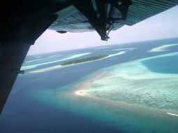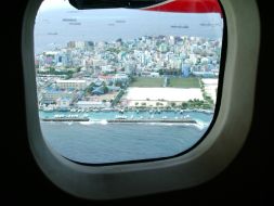 大きなエンジン音、ガソリンのきつい匂い、オープンなコックピットから出てきたパイロットが安全の説明をしてからいよいよ離陸。上昇する機の左側の窓から見たマーレは、海の真ん中に建造物を置いたようでとても不思議な光景でした。頭に浮かんだ言葉は「空中都市」。もちろん空にではなく、海に浮かんでいるのですが。