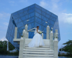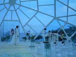 バリ島サヌール地区「インナグランド・バリビーチ」ホテル内にある、その名の通り、ダイヤモンドのような形をしたガラス張りのチャペル。バリの陽光がいっぱい降り注ぎ、祭壇の向こうには落ち着いたサヌールの海を見渡しながらのロマンティックウエディング!