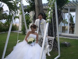 セレモニー後は、写真撮影を!ダイヤモンドチャペル周辺には、たくさんの写真スポットがあります。バージンロード途中の階段でチャペルをバックに、こちらは改めてチャペルの大きさを実感出来ます。チャペル隣のブランコにてキュートな一枚を。またビーチもすぐ側なのて、移動も楽なのが嬉しいですね。