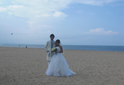 (写真左:チャペルに向かう階段にて、中:チャペル隣のブランコ、右:周辺ビーチにて)