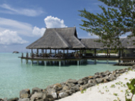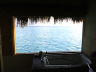 帰りのチケットを渡して、いつもお世話になっているSTWの人に挨拶をして日本からの心ばかりのお土産を渡した。すぐに、タージエキゾチカの日本人スタッフに身柄を預けられて、ボートに乗った。今回は、実に効率が良い!!空港を出てから10分もしないうちにリゾートのボートに乗っていた。しかも、エキゾチカは近い!!マーレから10分ちょっとで到着である。レセプションでレモネードを頂き、我慢していたタバコを吸ってたら、レセプションのマネージャーらしき人が挨拶に来てくれた。海外旅行なのだが、ここまでほぼ日本人としか会話をしていないのと寝ぼけているせいか?日本語で挨拶している…マネージャーは「ぽか~ん」としてた…すぐに、お部屋に案内された。今回は、デラックス水上ビラを予約していた。カートで各施設を案内しながら部屋まで連れて行ってくれる。が、思った以上に島は大きい…面積が狭くても細長なので、端から端はかなりある。多分、歩いて案内されていたら汗だくになっていたに違いない…なんたって、飛行機の中ではファミレスのドリンクバー以上に飲んでるし…部屋は、ココアの部屋よりは狭く感じたがそれでも、快適に過ごすには十分の広さである。