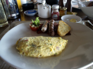 朝からシャワーを浴びてる余裕は無い。 かなり急いで、レストランに向かったので汗だくである。 ウエイターにのんびりと飲み物をどうするか聞かれるが。 速攻で、オレンジジュースとコーヒーね!!と頼んだ時の顔は鬼の形相だったに違いない。 メニューを持ってきたが、早くできる卵料理を聞いた。 奥さんは、昨日と同じスクランブルエッグで量少なめ 私は、早めに出来る卵料理…なんだかわからない?? とワッフルを頼んだ。出て来るまでにパンを食べ終わる!! と言っても全ては食べてないけどね。どうしても夫婦そろって食べれないパンが3つあった。料理が来たら、速攻で食べる!! 色気とかのんびりなんて言葉は無縁だ。 思いっきり食い気である。しかも早い!!私が頼んだ卵料理の味は、結構美味しかった。レストランに入って、20分後にはレストランを出ていた。 ゆとりを持ったリゾートライフは何処へ… これでは、日本と変わらない!!おそらく、気の毒な日本人と思われたに違いない… が、ダイビングに一緒に行く人たちには迷惑を掛けれない。