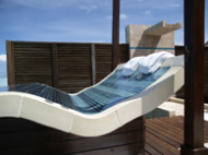 ばっちり塗ると紙パンツ以外は、ほぼ全身泥まみれである。 この格好で、40分間を過ごせと言われたみたいだ。ここには、海に向かってタイルで出来た 素敵なベットが置かれている。 このベットは、寝心地がよく気持ちいいのだが日差しをもろに浴びるため暑い!!一応、タオルを引いて上るのだが 高さが結構あるので、上りにくい。 そう言えば、泥は乾いたら備え付けの 霧吹きで水をかけてねといわれていた。が、こうも暑いと汗が噴出し、泥が乾く所がほとんどない。それでも、部分的に少々乾いたので霧吹きを掛けてみる。 気持ちが良い!! 泥塗り期間中は、フルーツや備え付けの冷蔵庫に 入っている飲み物が飲み放題である。 冷蔵庫の中には、エナジードリンク 数種類の果物ジュースが入っている。 それと、チョコバーとかナッツとかの簡単な食料も入っている一応、食べ放題飲み放題である。 気取ってくつろいでも所詮泥まみれである。 40分が経過して、今度はアウトシャワーで泥を流す。これは、左右両サイドにあり それぞれ違うシャワーである。 シャワーで流した泥は、そのまま海へ帰る。ちょっとした環境破壊?そう言えば、紙パンツも脱いだ今!!もちろん全裸である。 そして、沖にはボートが止まっているしかも有人のボートだ!!たぶん丸見えであろう。 気にしてもしょうがないので、体を拭いて 部屋に有る寝巻きに着替えて、後はくつろぎタイムである。日陰の風通しの良いところにソファーが置いてあり そこで海を見ながら「ぼ~」っとする。気が付けば、寝ていた。 30分くらい寝ていただろうか、かなり気持ちが良かった。無事に終了した。 この後は、洗面台の所にある 手と顔と足に塗るクリームが置いてあるので それを薄く塗り、着替えてスパの受付まで行く。ちなみにこのクリームは泥を流した後に 塗るのかもしれない。 その辺は、説明を聞いていない私が悪いのだが定かでない。基本的には、オイルが入ったものを 日光が当たるところで使用するのは アロマテラピスト(かなり自称だけど)としては あまり賛成できない。 もちろん、細かい成分が何であるかわからないから 正しいかどうかもわからない。ただ、私が知っている匂いから察するに 控えた方が良いと判断したまでで!! 極上の時間を過ごされましたか?などと受付で聞かれる。 気持ちよく寝れたし、泥を塗った体はおもろかったので かなり楽しかったよ!!と言っておいた。いわゆるマッサージはしていないので そこまで気持ちいいものではない。 何事も経験と思っているので、これはこれで良し!!しかし、マッサージ重視の方はしない方がベターだ。 帰りに、翌日のマッサージの予約をしておいた。