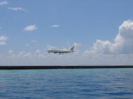 しかし、波も無く、風も適当に吹いているので 気持ちが良い!! 早寝寝坊の分際だが、すっかり熟睡してた。ポイントは、空港の滑走路の真横である。 マーレとフルレの間にドーニを着ける。 近くをイルカたちがジャンプして遊んでいる。 しばらく、イルカたちに見とれていた。 ここは、人気があるポイントなのか 色々なリゾートのダイビングドーニがやってきていた。 本来なら、少し流れがあり潜降ロープで 潜行するはずなのだが この日は、流れもなくべた凪なので勝手気ままな自由潜降!!しかも、適当に水中集合である。 このほうが、ジャイアントで飛び込んだ勢いで 潜行できるから楽である。 水深は、一番深いところで40メートルくらい 一番浅いところが18メートルくらいであった。ヴィクトリーは、船の名前なのだが結構大きい。 魚自体は、特別、珍しい魚もいなかったのですが船内に入って、色々と見学だ…わかりやすく言えば 水中で氷川丸を見てる感じ…わかりにくいか?? モルディブで売られていただろうお土産が 沢山船の中にあった。 船員が使っていたと思われるラジカセとかも… 結構深いところを長時間いたので、デコが気になる。1分をきってしまったので、私だけ小さい脱出口より 船外へ脱出!!ブリーフィングの時に デコと残圧だけは気を付けてと言われていたので 純粋に守ったわけですが… ガイドさんと奥さんは平気でデコを出してた。まぁ、徐々に上がっていけば すぐに消えてしまうんですけどね。 残圧は、結構残っているのにデコが出てしまいそうなので 船の上の方に移動した。 そこには、なんだかわからないが 大きな貝が口をあけている。ダイバーが通ると口を閉じる。そう言えば、脱出した時におデブな為、 足を船にぶつけてしまい出血してしまった。私は、傷口にばい菌が入ったかと思った。黒いので… やばいと思って、傷口をこすって見た。 が、一向に黒さは変わらない。 だけど、あまり痛くないからどうでも良くなってきた。 しかし、よ~く考えて見ると水中では血は赤く見えない… こすったって事は、傷口を余計に広げただけである。船体をぐるっと1週して終了だが… 最後の最後でかなり泳いだ。 このダイビング中、す~っと水中でイルカの鳴き声が聞こえてた。遠くにいるのだろうか、姿は見えない… エクジットは、自分でフィンを脱ぎドーニ上のスタッフに渡す。後は、ラダーを自力で上がればスタッフが立っているだけで 機材を下ろしてくれて、機材を所定の籠にしまってくれる。こんなダイビングに慣れると 他のダイビングは行けなくなるなぁ~!! 空港の近くと言うこともあってかなり飛行機が近くで見れる。 だから、ど~って事もないけど… 色々なところの飛行機が着陸してた。 全員、エクジットしたところで、帰途へ着く!! 再び40分かけて戻ることになる。 波の風もほとんどないから 快適なドーニ生活だ!!再び眠くなる… 奥さんとガイドさんとその他のお客さんは ドーニの天井にいたが私はスタッフしかいない屋根の下にいる。広々と使えて、誰もいないことをいい事に 横になって寝ていた。 しかも、船が出て5分後には寝ていた… たまには景色を楽しんだらどうだい? って思いながら寝てた。何分掛かったかわからないが 起きた時にはエキゾチカの近くだった。 いやぁ~それにしてもよく寝た。お腹も空いてるし… ダイビングセンターに戻ったら ログ付けというより雑談…で、30分位いた。 ちょうど、スタッフの休憩時間になったので 午後のダイビングの集合時間を聞いて部屋に戻った。