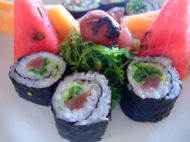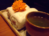 天ぷらの海苔巻きは、前菜って感じで メインにはなりえない量だった。 味のほうは、サラダは普通に美味しかった。 得体の知れない野菜も入ってなかったし… パスタは、期待通りの味で美味しかったです。パスタの茹で加減とかもグッドでした。問題の天ぷら海苔巻きは、カツオの周りに小麦粉? で練ったものを巻きさらに海苔を巻いて 天ぷらとして揚げているのですが… いまいち!!どんなもんだか挑戦した。私が馬鹿だった。 と思わざるを得ないと言うか、 一応、いくらが乗っていたりとこってはいるのですが... 醤油が用意されて、それで食べるか、塩で食べるか… 塩のほうが美味しかった。本来ならデザートを食べて終わりにしたいところだが なんとなくお腹も膨れ眠いし、だるいし… 奥さんは頭痛いと言ってるしで、早々に切上げる。レストランで思うことは、この距離を歩いて来るよりは ルームサービスにした方が良かった。と言うことと私たちが日本人でせっかちだと思われたか? お客さんが少ないせいか? 頼んでから出てくるまであまりお待たせしない。帰り道も長い…レセプションで カートを呼べばよかったと後悔する。 部屋に帰ったら、風呂に入って歯磨きしてすぐに寝た。