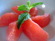 もはや、笑いを通り越して反応に困る私… 奥さんは、それについてきたご飯を狙っている。この照り焼きには、白米が小さいどんぶり?で 出てくる…。タイ米とわかっていても 美味そうに出てくるから不思議である。漬物は、しょうがときゅうりが 薄く切られたものが出てくるんですが このきゅうり味がしないんです… 漬物じゃなくて、ただ切っただけなのかも…奥さんは、どうしても白米と梅干が食べたいらしい… しかも、自分では絶対注文しない… おそらく、それが説明できないのではなく 言うのが恥ずかしいからだと思われる。しかし、英語で梅干って何だ? サワーチェリーとか言って見るか? しょうがないから、白米と梅干を注文してあげた。待つこと数分、丼飯とそれと同じ大きさのどんぶりに 梅干が8個くらい綺麗に盛り付けられて出てきた。これには、さすがに驚いた… 奥さんも梅干が好きだが さすがにこの量を食べるわけにいかない。奥さんは、半分くらい梅干食べてご飯も食べて 超ご満悦である。 味噌汁はあまり味がないから頼んでないけどなんとなく、飲みたくなるものである。このほかは、フルーツの盛り合わせとか ワッフルとか頼んだっけなぁ~!!両方とも期待道理の味で、美味しかった。食事が終了して、レセプションに 次の部屋番号を聞きに行く。 が、まだ確定していないようだ。