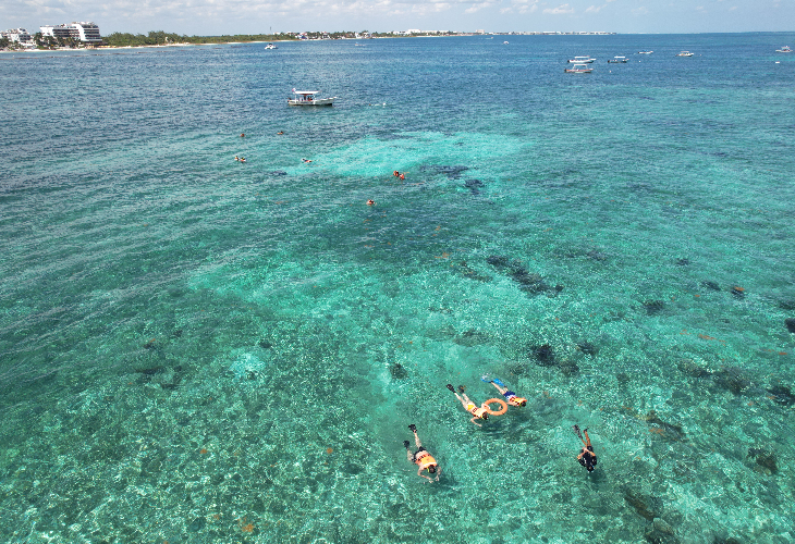 <ビーチエントリー>【日本語ガイド】世界で2番目に大きな珊瑚礁メソアメリカンバリアリーフスノーケルツアープラン番号:CUNPMS01