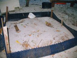 すべて集め終わったところで、カメを戻します。何もない穴を後ろ足で土を集めながら必死で埋めているカメさんの姿はかわいそうだったけど、保護の為には仕様がないのでしょう。