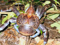何がいるのかわからない森の中を木を掻き分け、根っこをまたぎつつ進むとおいしそうなココナッツクラブ(椰子蟹)が見れました。