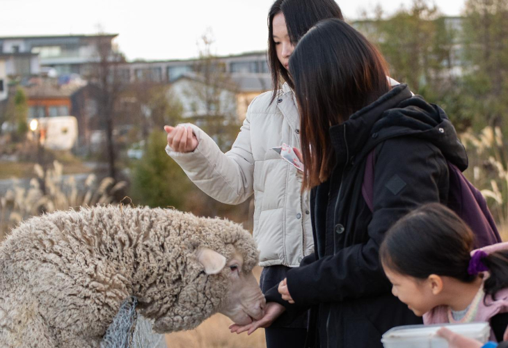 メリノ種の羊、クネクネ豚、子羊、アルパカ、子牛など、農場の人気者たちにエサをあげたり、ふれあいをお楽しみください