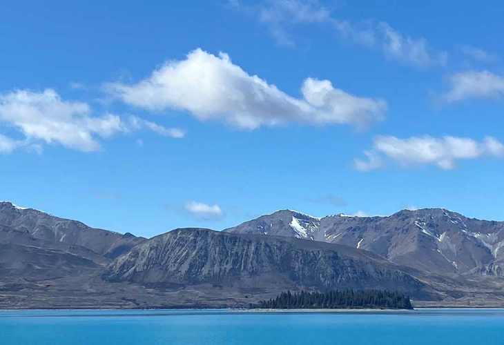 レイク・テカポ東岸の中腹に位置するマウント・ヘイは、町並みとサザンアルプスを一望できる絶好の展望スポットです。