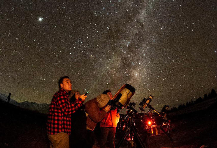 75分間の星空観賞ツアーでは、レイクテカポ周辺の最も暗くアクセスしやすい場所に特別にアクセスできます。このツアーは、肉眼での星空観賞、明るい星や重要な星座の解説、夜空を使ったナビゲーション方法の学習、望遠鏡観察、星空の下での個人写真撮影(無料)、そして天文学という科学分野の紹介を組み合わせた体験です。