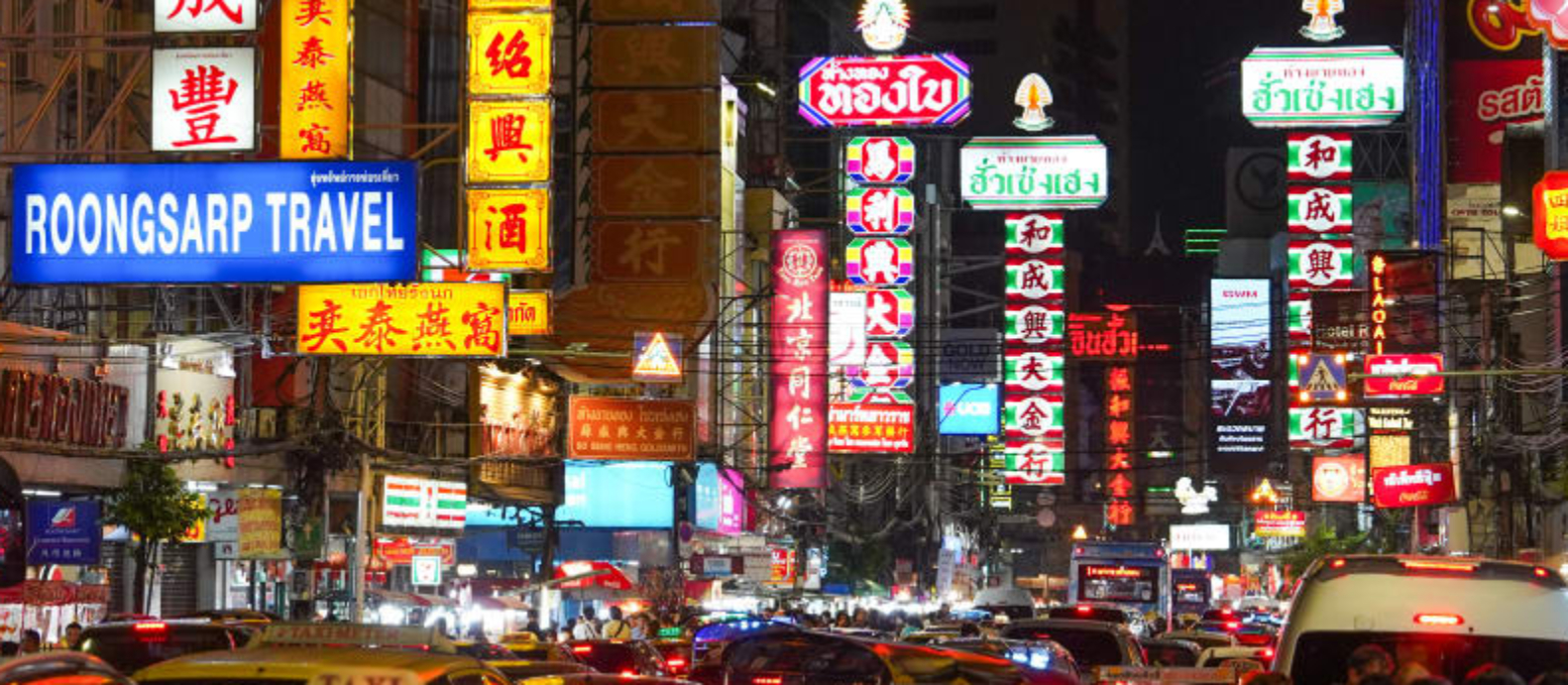 チャイナタウンの中心でパッタイを片手に乾杯。その後は、活気あふれるナイトマーケットを散策し、タイと中国の食文化の融合を堪能.
