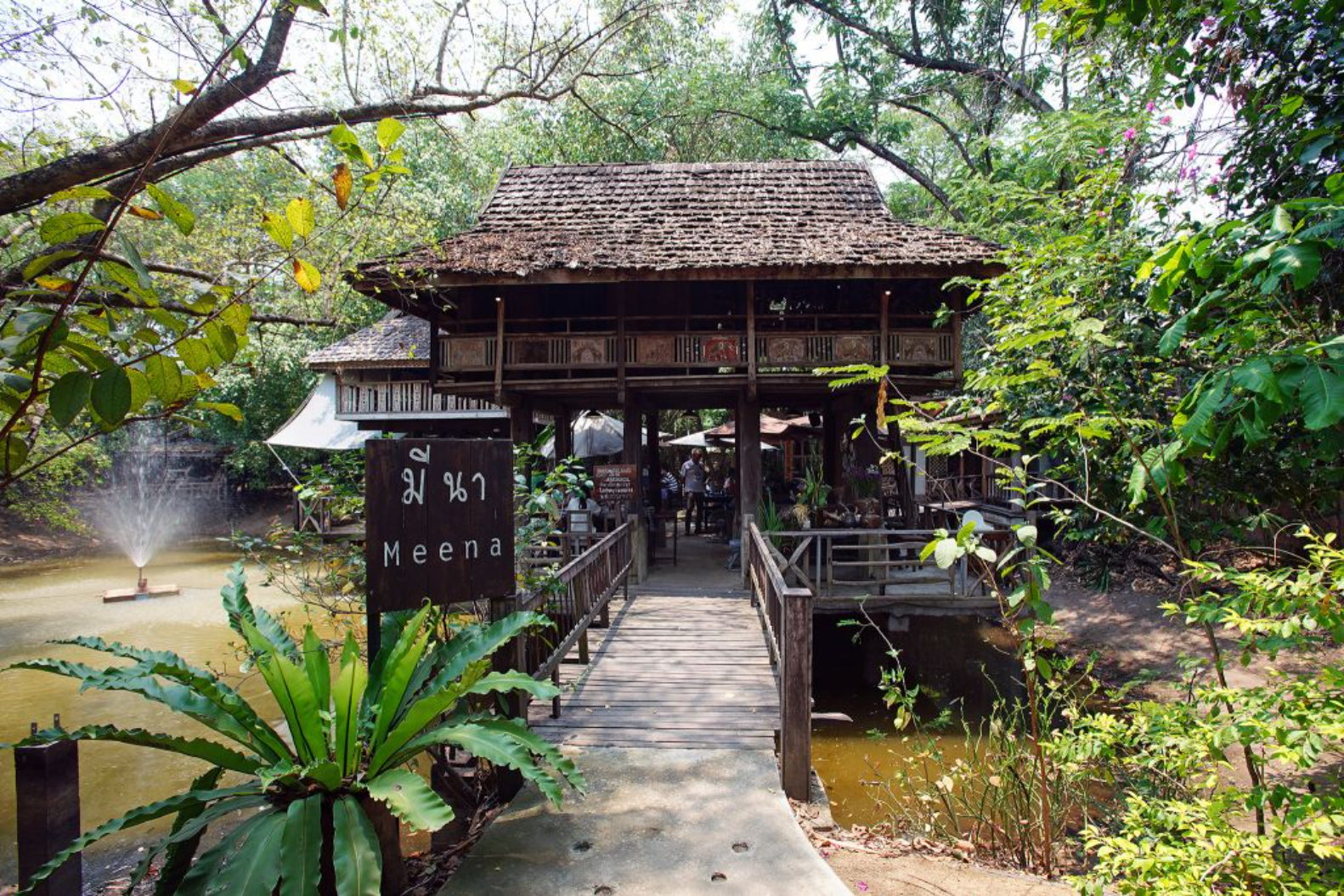 北タイ・チェンマイ州サンカムペーン郡サンクラン村に位置し、市内から車で約20分ほどの場所です。もとは稲の貯蔵倉だった木造建築を活用し、自然に囲まれた落ち着いた庭園空間として営まれています。ミシュランガイドの Bib Gourmand にも選ばれており、「手頃で美味しい料理」が高く評価されています。
