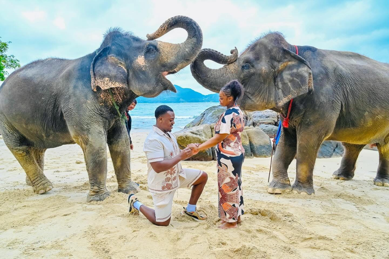 ビーチへ到着後、人なつこいゾウさんと色々なポーズで写真撮影を楽しみましょう♪