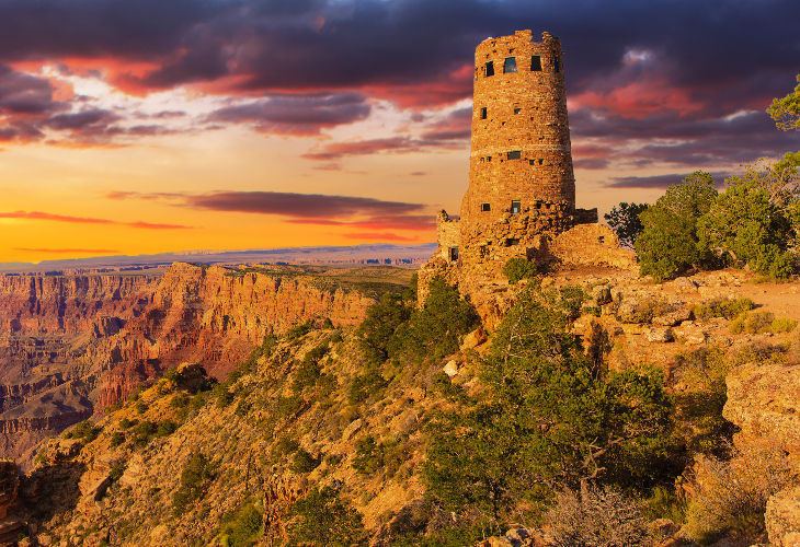 高さ21mの展望台は、谷の下を流れるコロラド川の上流まで見渡せるスポットです。実はナンバーワン絶景スポットとの呼び声高い大自然をお楽しみ下さい。