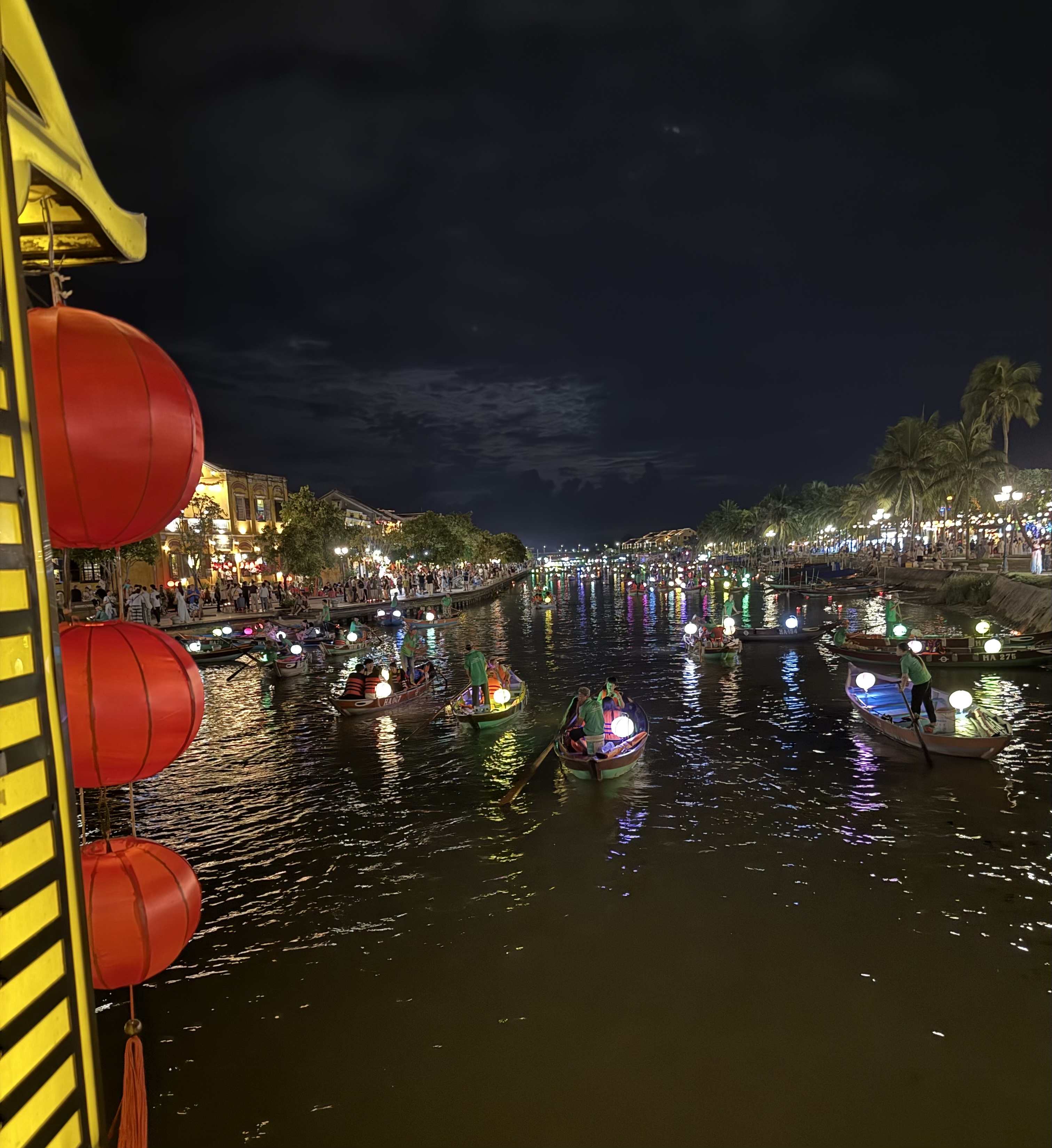ホイアンの夜のランタンは街並みと川沿いの景色がとても綺麗で街並みも雰囲気があってとてもおすすめです。別料金ですが、時間があったら小舟にのってランタンを流すのもいいかも。