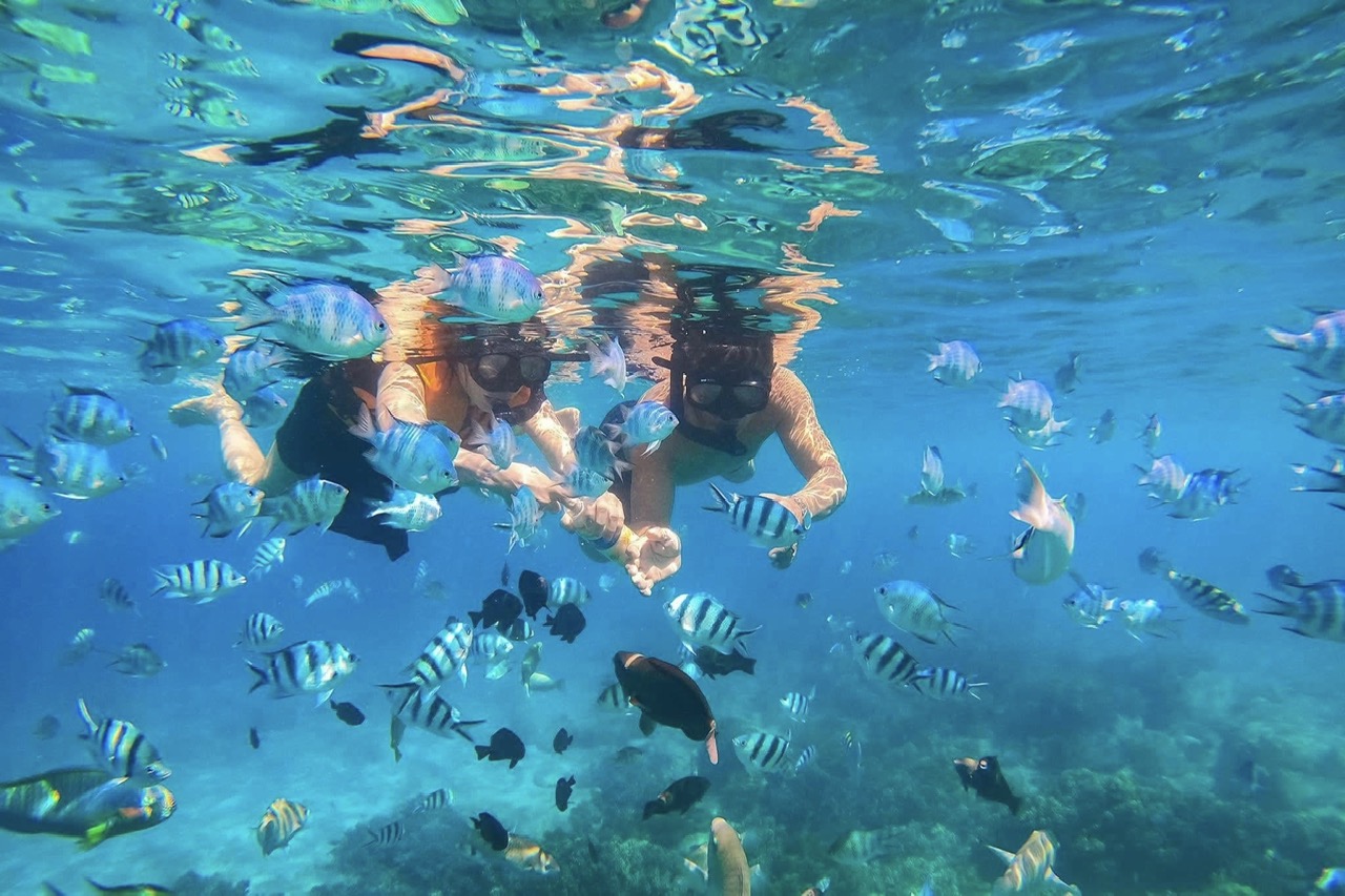 ポイントに到着後、シュノーケリングをお楽しみください。キラキラのサンゴ礁や小魚の群れはボートツアーならでは!現地でのオプションとして体験ダイビングやシーウォークなどもお楽しみいただけます。