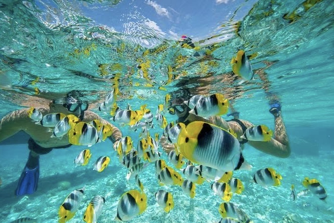 ボートに乗ってシュノーケリングを楽しんだり、フローティングバーで海の上でカクテルを飲んだり