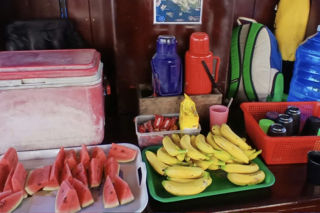 ポイント移動中は波に揺られながらフルーツやスナック、コーヒー等でリラックスタイム!