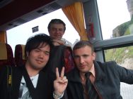 運転席でドライバーのミルコさん(上)とイケメンドライバー(名前を忘れました。)(下)と一緒に記念撮影♪(写真右) 言ってみると快く引き受けてくれました。