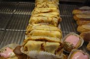 ここで、ガイドのモリさん(ガイドは毎回変わる)から教えてもらったパン屋さん(写真中央)でBEUVRONというスイーツを食べました。(写真右) BEUVRONは、りんごをクリームとスポンジ生地で挟み、クレープで包んだものです。りんごの甘みとクリームがマッチしていてとてもおいしかったです。お値段は一個で2.95€でした。