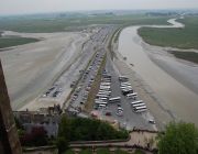 モンサンミッシェルが近づいて来るにつれ、私のボルテージも最高潮に!そしてこの風景。バスは、モンサンミッシェルより少し手前で一度停車します。それは何故か・・・。その訳は、モンサンミッシェル全体の風景を見せてくれるためです。