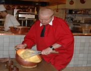 店内には、オムレツの調理風景を見学できるようになっています。見学した私は、そんなに卵をまぜるのっ!!と驚いてしまいました。