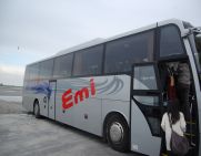 集合時間近くになるとバスが駐車場に現れるので先に場所を確認しておくのが良いかと思います。エミのバスは比較的わかりやすいロゴが入っているので見つけやすいです。