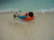 ヴァドゥではシュノーケリングセットも無料です。ダイビングショップには日本人スタッフがいて色々な話をしてくれます。ヴァドゥは砂浜から5~6Mもいけばサンゴ礁も見えてきます。魚が最もいるスポットとして教えられたのはダイバーズショップの裏側です。砂浜よりドロップオフまでの距離が一番短いところで魚を見てすぐ戻ってこれます。その水の色は断然違います。深い深いブルーの色とあの透明感、水の温度も違います。そこを悠々と泳ぐトロピカルフィッュ。あまりにたくさんいるので手を伸ばすと届くぐらいですが、魚たちも上手にする抜けていきます。水族館でしか見たことのない魚たちが目の前を泳ぐ様は圧巻です。