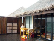 水上コテージは部屋の中でも十分に満喫できます。広いジャグジーがあり日本から持ってきたバブルバスを入れてリッチなバスタイム。ホテルよりプレゼントしてもらったシャンパンを開けてジャグジーで乾杯と洒落た映画を見ているみたいなリッチな気分になりました。もう最高~。