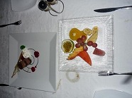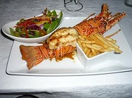 今回のツアーには朝食のみが付いてます。朝食はレストランだといろんな物がメニューの中から食べ放題。こちらが注文しただけ持ってきてくれるので、もちろん作りたての熱々。朝食は昼食も兼ねてお腹パンパンになるほど頂きました。2日目の朝食はお部屋のサンデッキでモルディブカレーのセットをセッティング。(ヴァドゥではルームサービス無料)ディナーは一回だけちょっと贅沢にロブスターディナーを予約。キャンドルの灯りがとてもロマンティックなテーブルに.前菜、サラダ、スープとパン。そこにドーンとでっかいロブスター。私のソースはホワイトソース主人はデミグラスっぽい味。それ2つとも美味しかった。最後にティラミスとフルーツのデザート、もう味も演出も大満足です。久しぶりにゆっくり時間をかけながらディナーを頂きました。