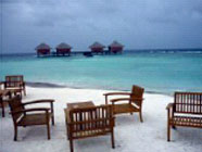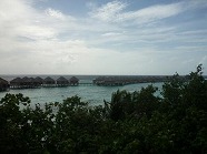 成田から飛行時間は約10時間で、現地時間20時にマーレ到着。スピードボートでホテルに着くとまずはBARでウェルカムティー。そこで私達の担当バトラーのヴィヌープを紹介してもらって、いよいよカートでお部屋へ。深夜は凄い雤風の音で目が覚め、これがスコール?まるで台風じゃん! 翌朝結構早く目覚め、カーテンを開けるともう疲れは吹っ飛び。そこはまさしくコバルトブルーの海です。来たぁーッ!!モルディブ!! と二人で叫びました。空は薄曇りになってました。彼に島内の施設を案内してもらい、歩いて5分ぐらいの島ですが、あちこち写真を撮りまくって1時間かけてゆっくり散歩して回りました。どこにレンズを向けても絵になる風景です。ビーチでは大きな鳥がお出迎えしてくれました。水上コテージが並ぶあの景色も最高。本当に夢の島に来たという感じでした。1日目の散歩を終えてコテージに戻り一休みしました。