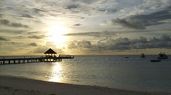 桟橋の後ろから朝日がゆっくりと昇ります。
