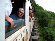 鉄道乗車の中でまず一番の見どころは乗車して間もなく渡るクワイ川鉄橋からの景色。そして第二の見どころは切っ立った崖と洞窟が