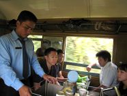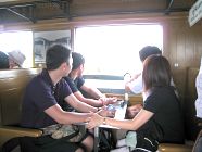 クワイ川鉄橋の近くから私達は鉄道(SL)に乗りました。観光客向け車両となっていますので、車内では軽食が配られ、飲み物の
