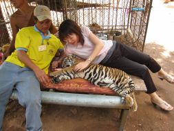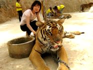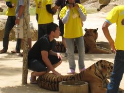 タイガーキャニオンでは、虎にタッチした写真は誰でも並んで取れますが、虎を膝に乗せての撮影は別途1000バーツが必要です。