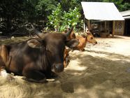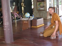 地面にのんびり腰を下ろす牛の姿も、ゆっくりとした動作でお堂の床をココナッツで磨いている僧侶の姿も、あくびをしてのびのび昼寝する