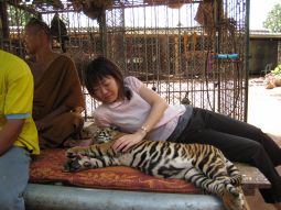 タイの山奥では、野生の虎が密猟され、残された子虎がこの寺に連れて来られるといいます。