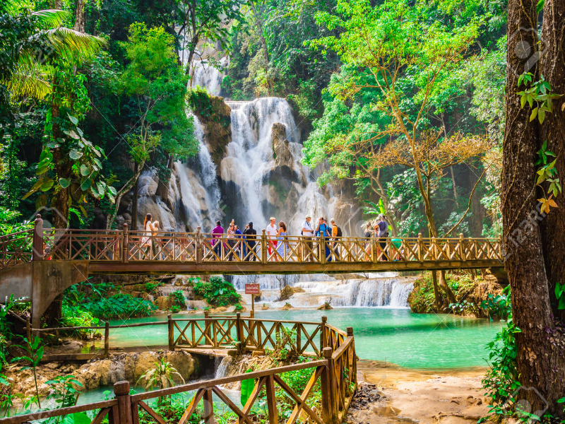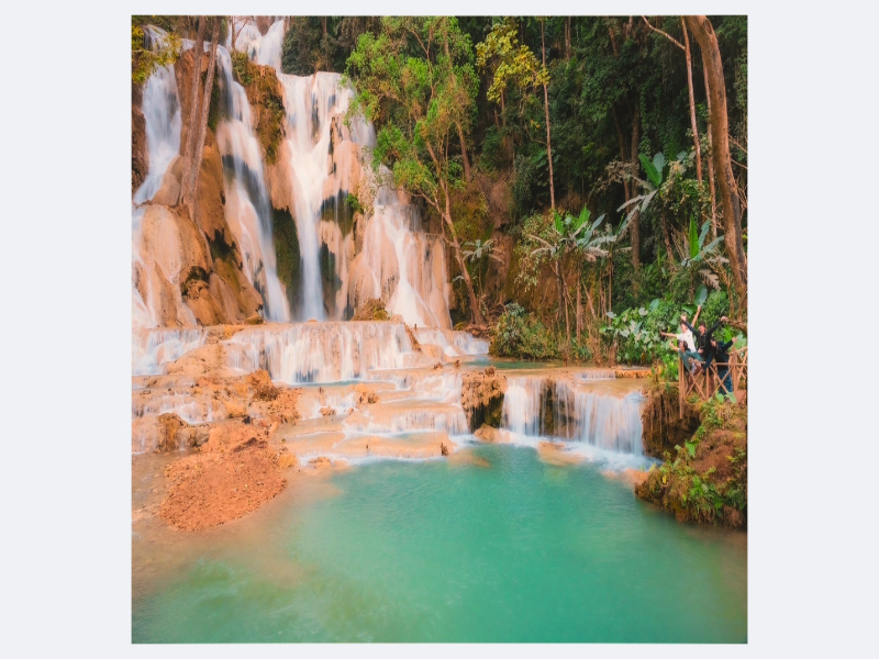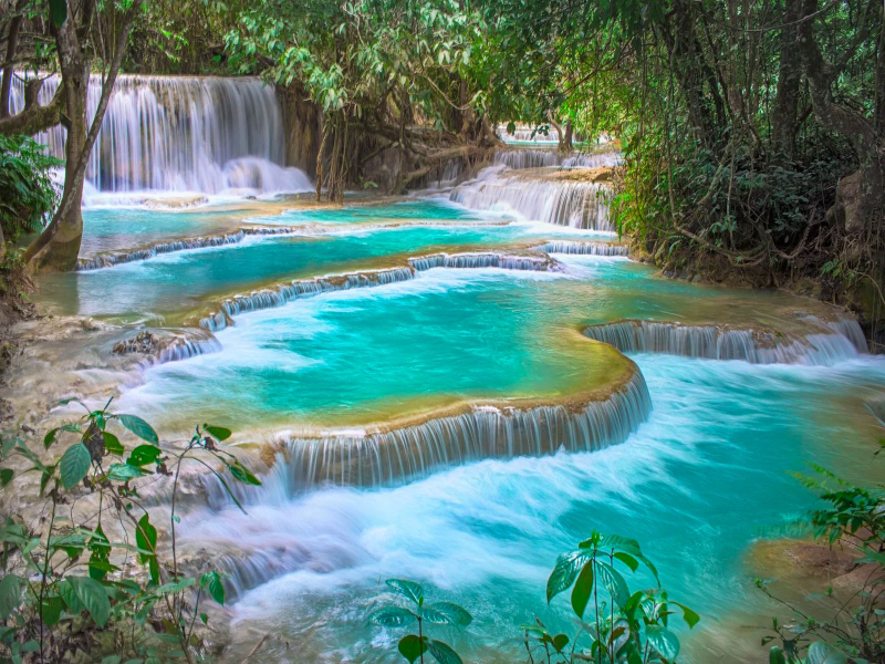 クアンシーの滝は、エメラルドグリーンに輝く段々の滝と、