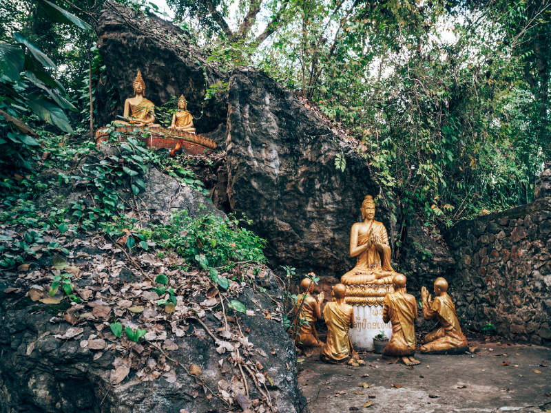 メコン川沿いの崖にひっそりと佇むこの洞窟には、約4,000体もの仏像が安置されており、その神聖な空気に包まれながら歴史と文化を感じることができます。