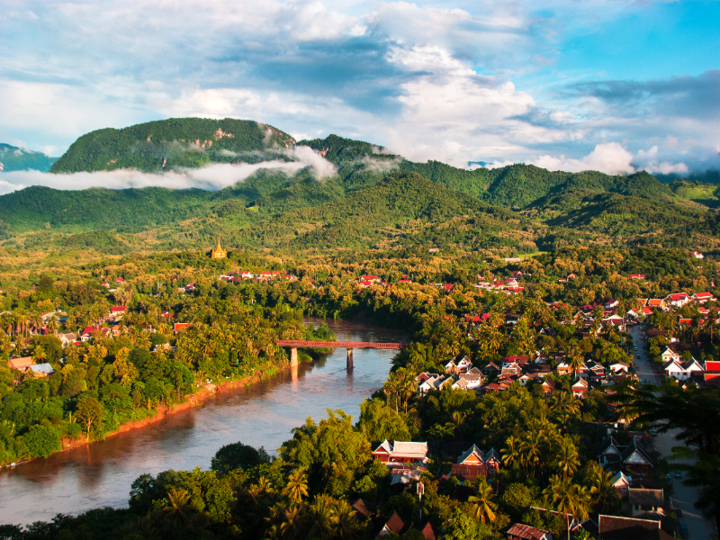 ルアンパバーンの静かな町並みと自然の景観が広がる景色は、訪れる全ての人々の心を癒します。