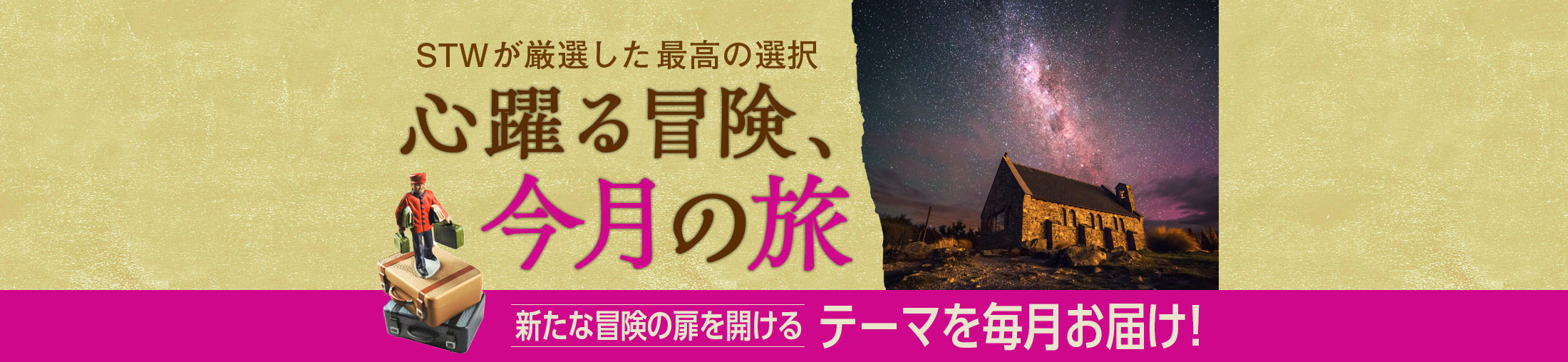 11月に販売されるツアーの中で、今まさに申し込むべき「旬な旅」をご紹介します。 STWの旅の職人(ツアー企画者)が選りすぐったツアーだからこそ、選んで損ナシ!迷ったらコレ!なラインナップです。 とっておきの旅をお楽しみ下さい。